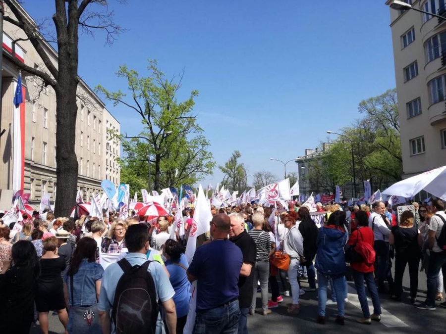 Ponad 5 tysięcy manifestantów - nauczycieli, rodziców i samorządowców - domagało się pod Ministerstwem Edukacji Narodowej godnych wynagrodzeń oraz dymisji Minister Edukacji Narodowej Anny Zalewskiej, która zdaniem protestujących szkodzi polskiej edukacji.